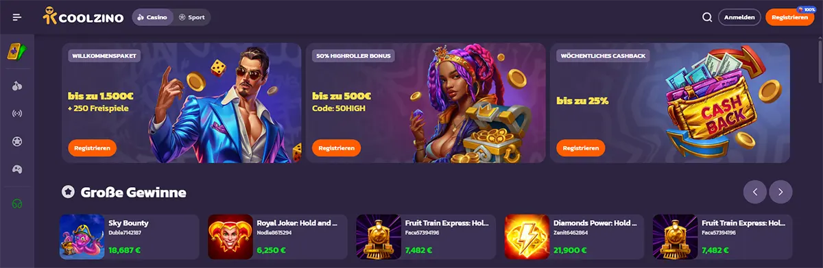 Unsere detaillierte Casino Bewertung zeigt, dass sich dieses Online Casino durch Geschwindigkeit, Zuverlässigkeit und Sicherheit auszeichnet - genau die Eigenschaften, die anspruchsvolle Spieler erwarten. Von modernen Zahlungsmethoden wie Kryptowährungen bis hin zu klassischen Optionen wie Visa und Mastercard bietet Coolzino die Flexibilität, die Sie benötigen.