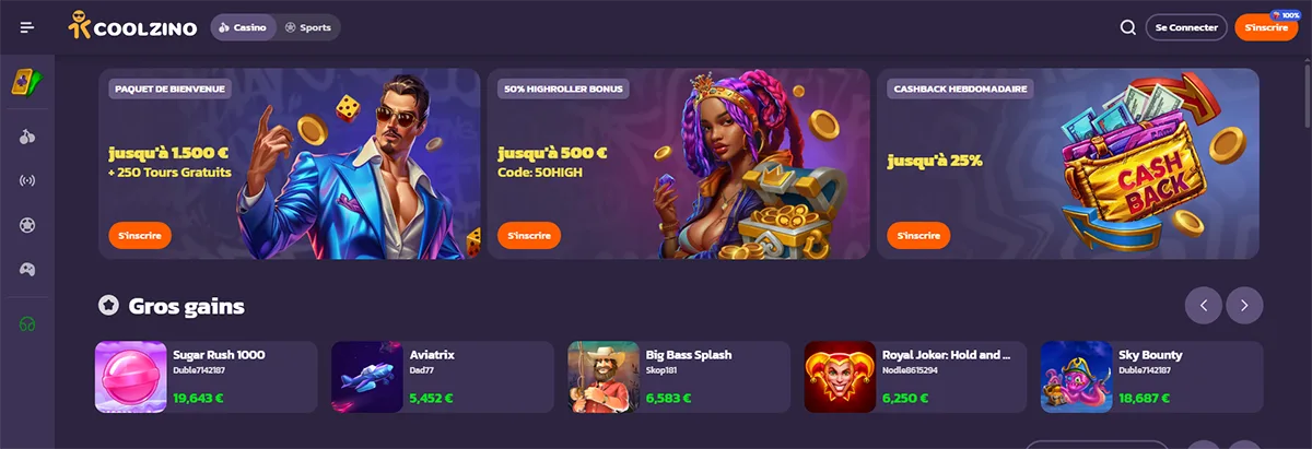 Coolzino présente un catalogue de machines à sous premium développé par des fournisseurs reconnus comme NetEnt, Play'n GO et Evolution Gaming. Notre collection offre des jackpots progressifs substantiels avec des gains réels pour les joueurs français.