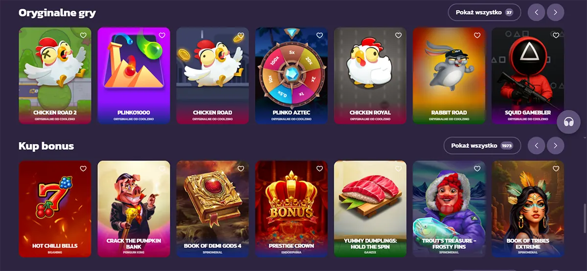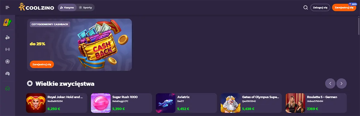 Coolzino Casino to kompleksowa platforma hazardowa dostępna online dla graczy z Polski. Nasze kasyno wyróżnia się intuicyjnym interfejsem i bogatą ofertą gier. Znajdziesz u nas ponad 2000 tytułów od renomowanych dostawców.