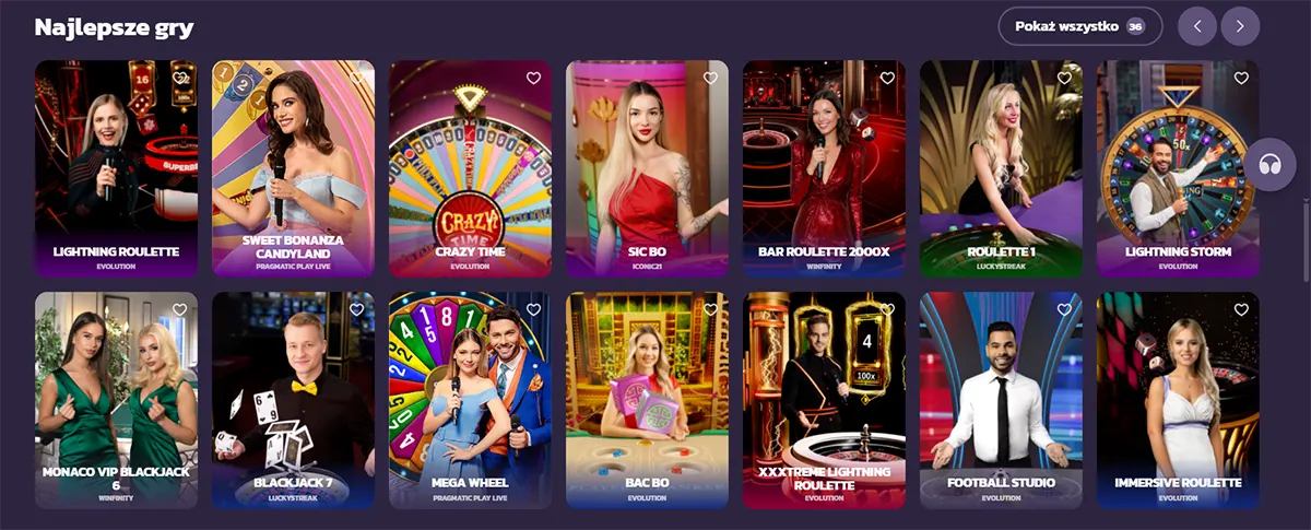 Wszystkie gry z krupierem w Coolzino Casino są obsługiwane przez profesjonalistów. Wielu z nich mówi po polsku, co ułatwia komunikację podczas rozgrywki.